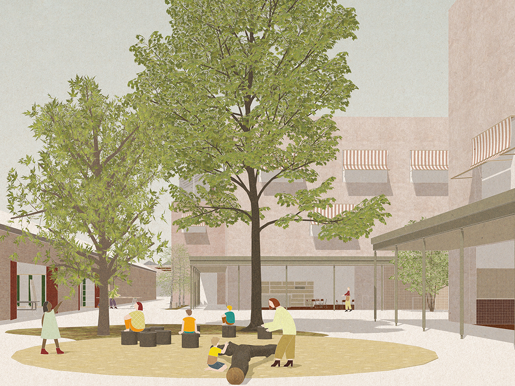 status competition design open call 2019 / floor area 1st phase 4.000 m2 / client ocmw dilbeek / designteam bart macken, eef boeckx, cinéma jolia (giulia lazzara, jolien de nijs), joris kerremans / care expert rudy de belie / structural engineer util / services engineer ingenium / collages and movie cinéma jolia